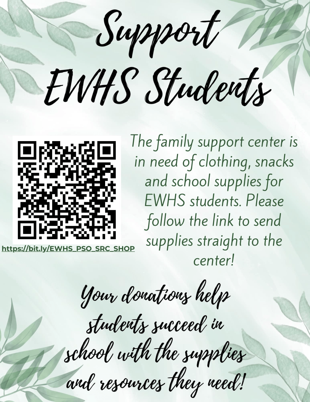 Our EWHS Family Resource Advocate is a critical resource for these students and their families in their journey to find stability and build a better future. Through their efforts students are provided with a wide variety of resources from food, housing assistance and much more.