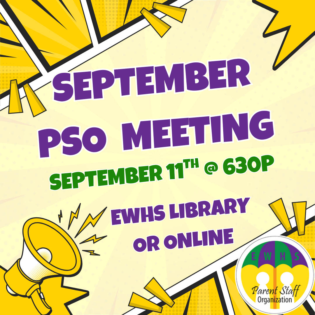 Our Parent Staff Organization (PSO) meeting is tomorrow β Thursday, September 11 at 6:30 PM in the EWHS Library (or join us virtually).