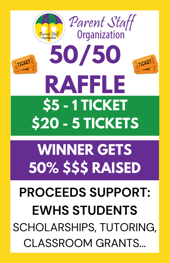 Questions: For any questions or concerns regarding the 50/50 raffle, please contact EWHS PSO at EWHSPSOPresident@Gmail.com.